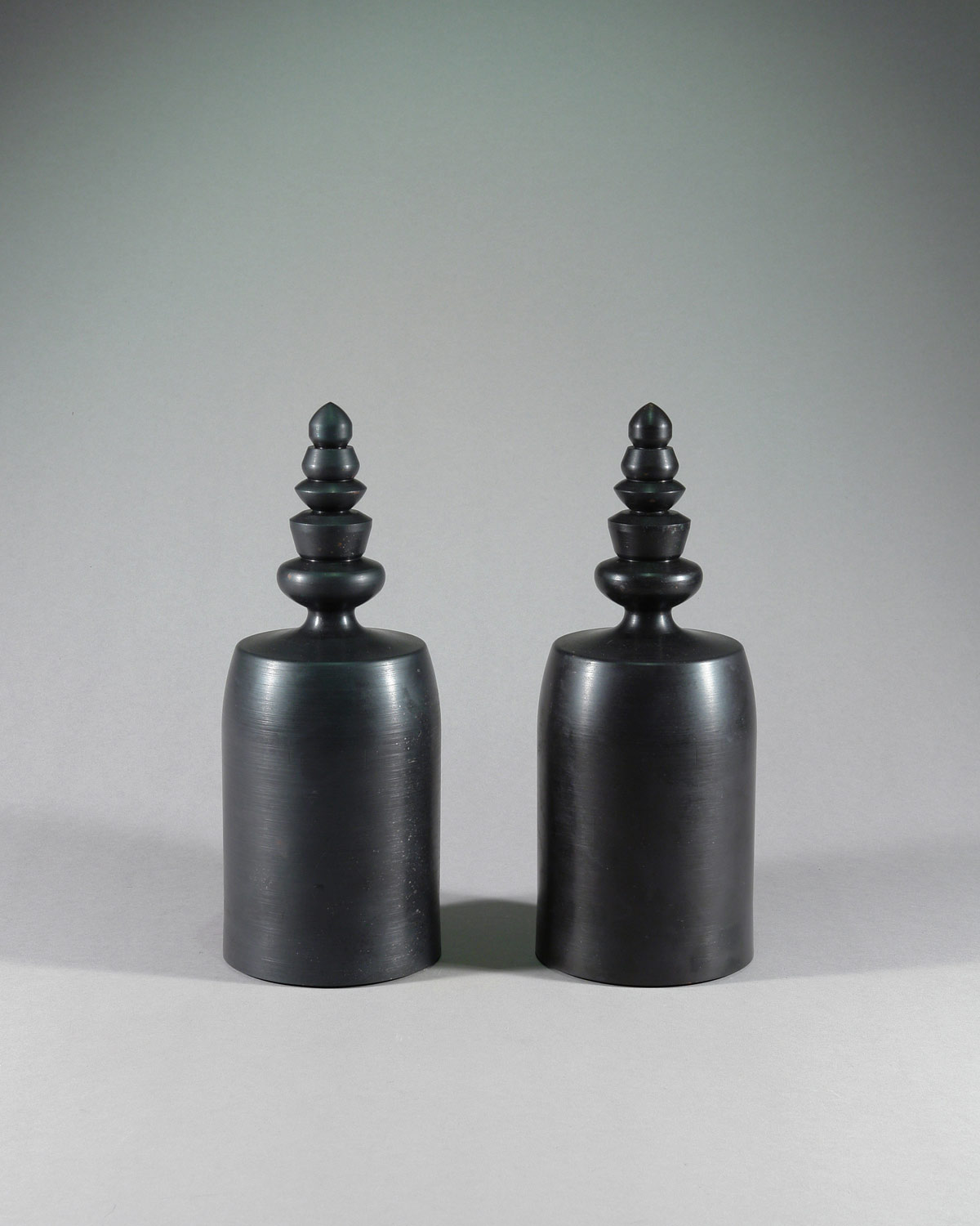 Obwohl diese beiden Skulpturen formal nahezu identisch sind, bilden sie für den Künstler erst im Paar eine abgeschlossene Setzung. Die Verdopplung ist kein Mittel der Variation, sondern der Präzisierung: Jede Skulptur verweist auf die andere und gewinnt ihre Stellung im Raum durch diese Beziehung. Gleichheit wird hier nicht zur Wiederholung, sondern zur bewussten Gegenüberstellung – ein Prinzip, das Abraham David Christian gerne einsetzt, um Wahrnehmung, Maß und Präsenz zu schärfen.
