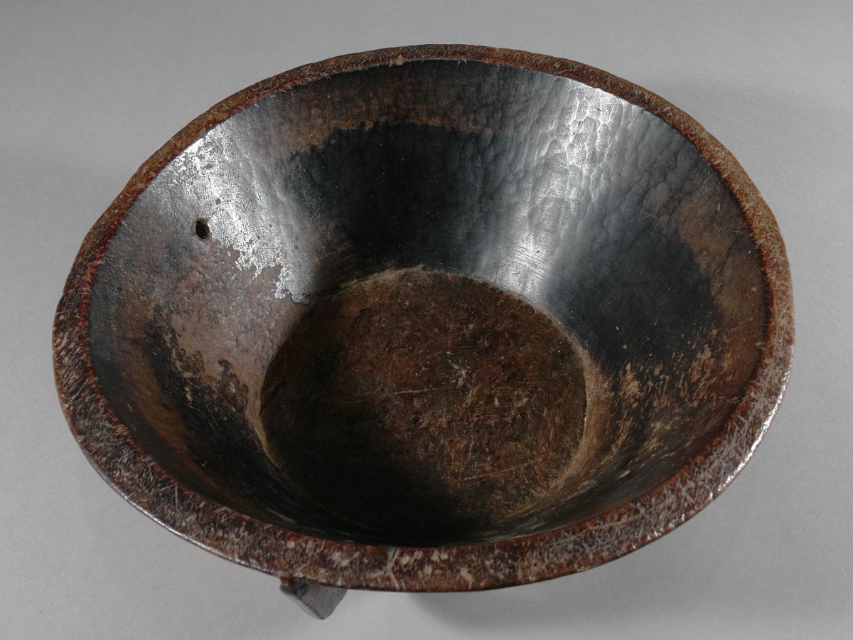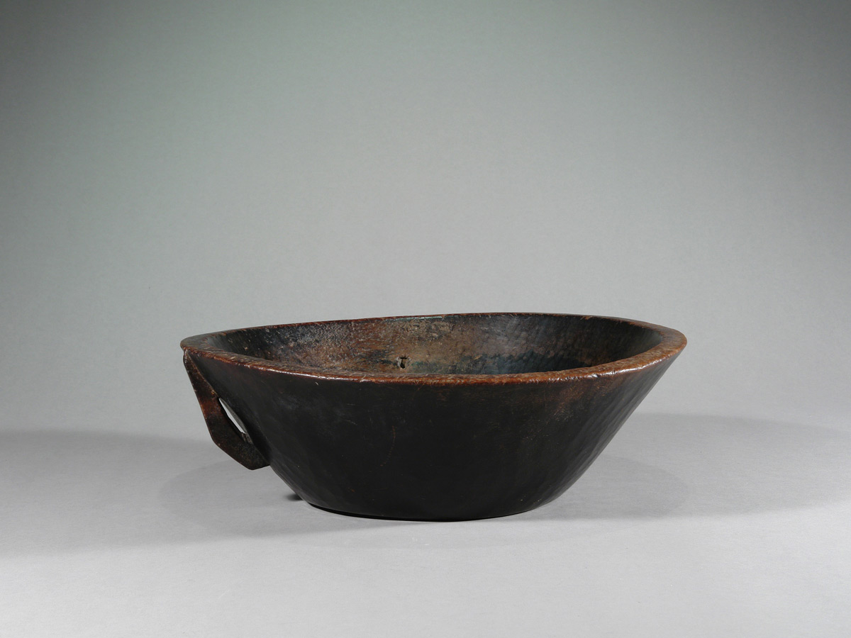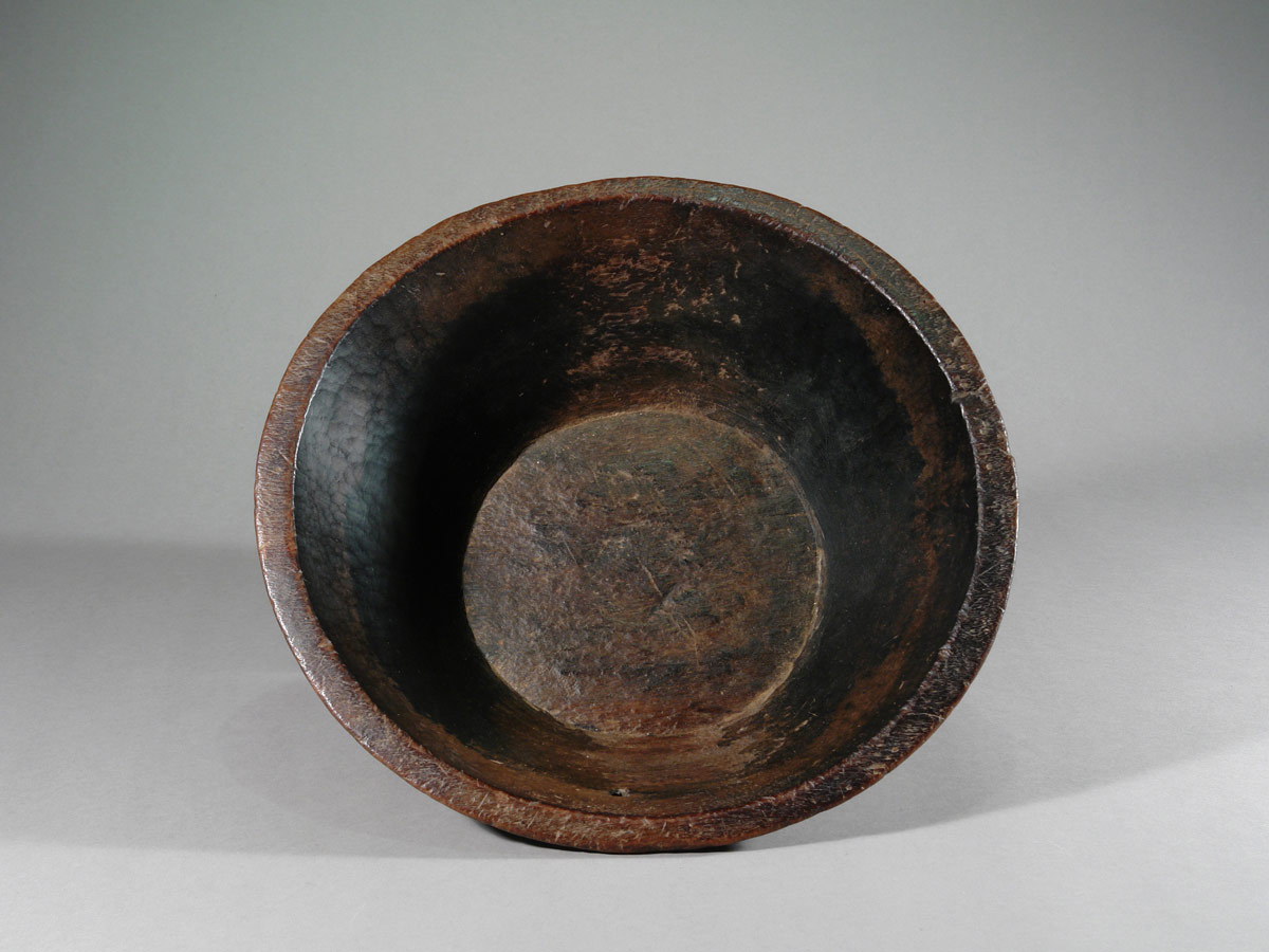 Diese alte äthiopische Schale ist aus einem massiven Holzblock gearbeitet.