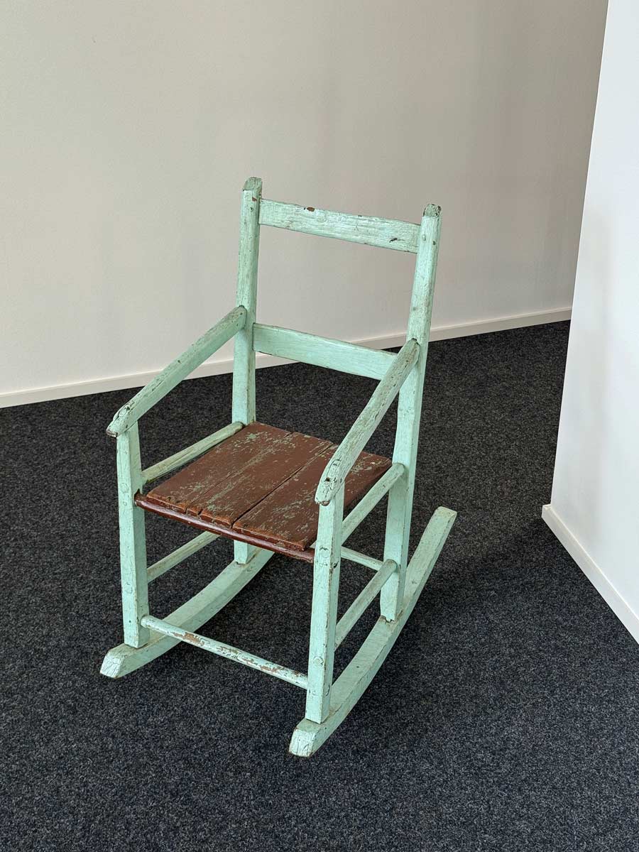 In Form und Ausführung folgt der Schaukelstuhl den Gestaltungsprinzipien der Shaker, deren Möbel im 18. und 19. Jahrhundert vor allem in Neuengland entstanden. Charakteristisch sind die sachliche Linienführung, die handwerklich präzise Konstruktion und der bewusste Verzicht auf dekorativen Schmuck – Merkmale, die sich auch in diesem Kinderstuhl in konsequent funktionaler Gestaltung wiederfinden.