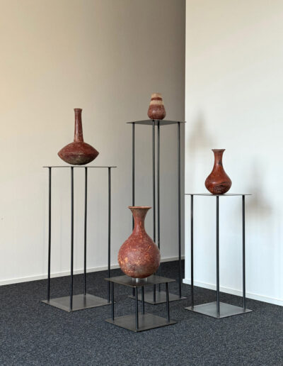 Die Terrakottaproduktion dieser Region nimmt innerhalb der materiellen Kultur Djennés eine besondere Stellung ein. Keramische Gefäße wurden über lange Zeiträume hinweg in lokal verankerten Werkstätten gefertigt. Charakteristisch sind klar gegliederte Formen mit bauchigen Körpern, lang ausgezogenen Hälsen und weit geöffneten Mündungen. Ornamentale Dekoration ist meist zurückhaltend oder weitgehend fehlend; stattdessen tritt die Form selbst in den Vordergrund. Die Oberflächen zeigen Spuren reduzierender Brennvorgänge sowie natürliche Alterungsprozesse, die durch Nutzung und lange Lagerung im Boden entstanden sind.