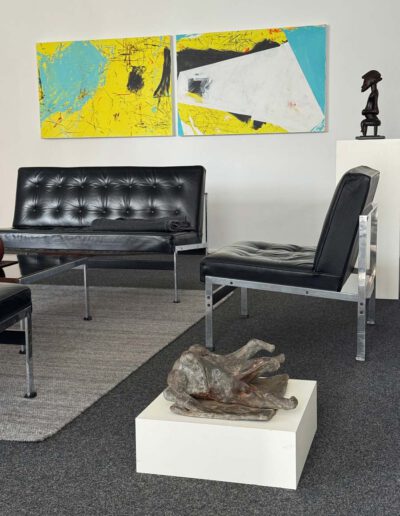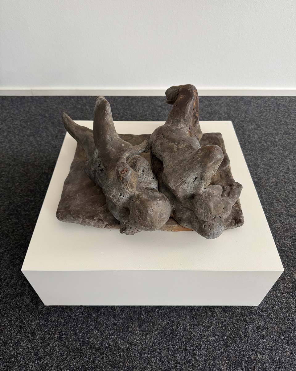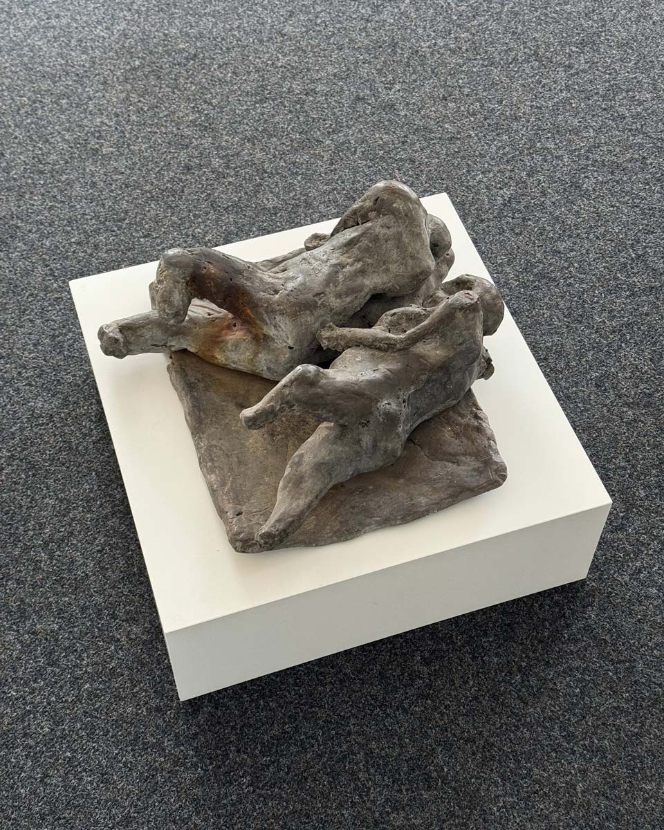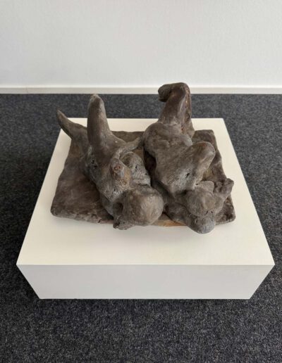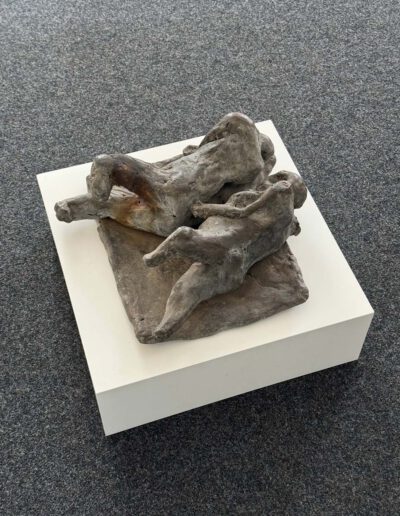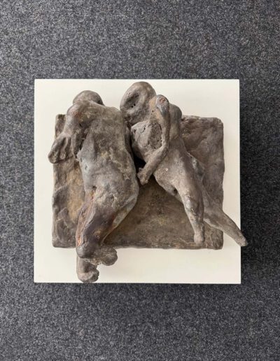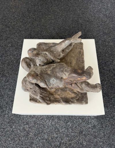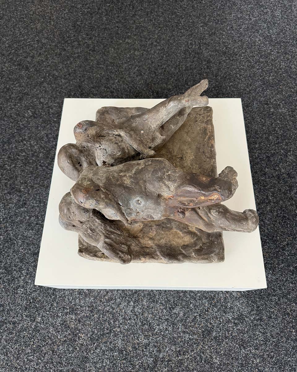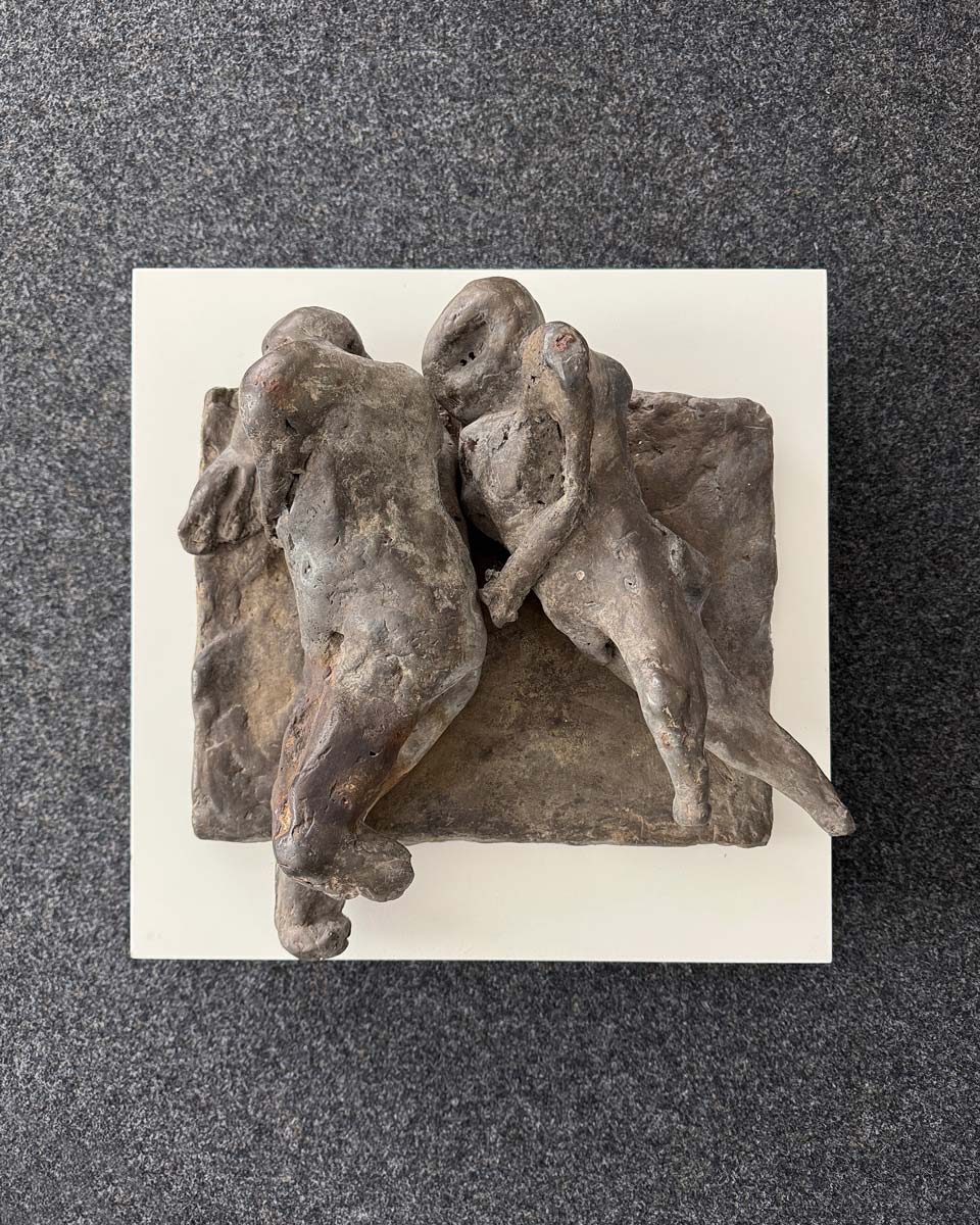 Somit ist Gestürzte weit mehr als eine frühe Arbeit. Die Skulptur erscheint wie ein Schlüsselwerk, weil sie schon Mitte der 60er Jahre jene seltene Verbindung erreicht, die große Bildhauerei auszeichnet: formale Präzision, seelische Dichte und eine Bildidee, die über das Sichtbare hinausweist. Was bleibt, ist der Eindruck zweier Wesen, die im Moment tiefster Gefährdung aneinander gebunden sind. Eben darin liegt die Schönheit und die große Präsenz dieser Arbeit. (AK)