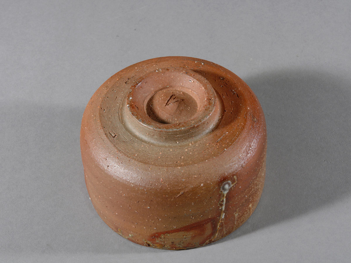 Der Holzbrand hat eine feine Landschaft aus Ascheanflug, Feuerfarbe und verdichteten Schmelzspuren hinterlassen. Auf der Schauseite zieht sich eine einzelne, vertikale Spur von Aschefluss über die Wandung. Sie wirkt nicht dekorativ. Eher wie eine natürliche Bewegung des Ofens – ein Moment, in dem Asche, Hitze und Schwerkraft zusammenkamen. Gerade diese Spur gibt der ansonsten stillen Schale ihren inneren Rhythmus.