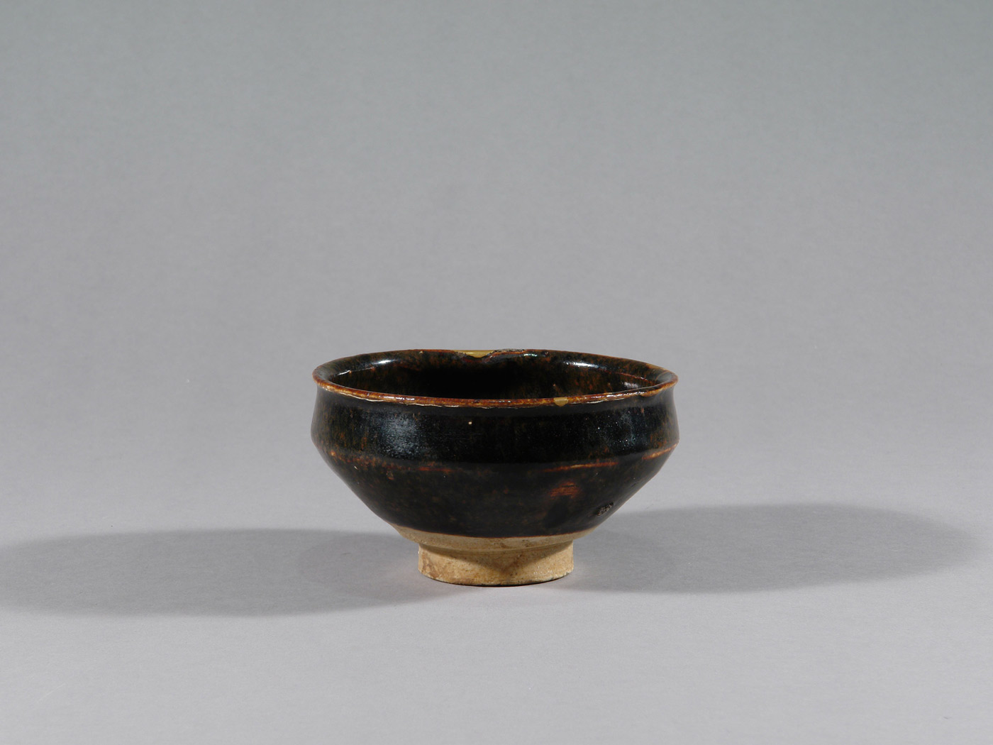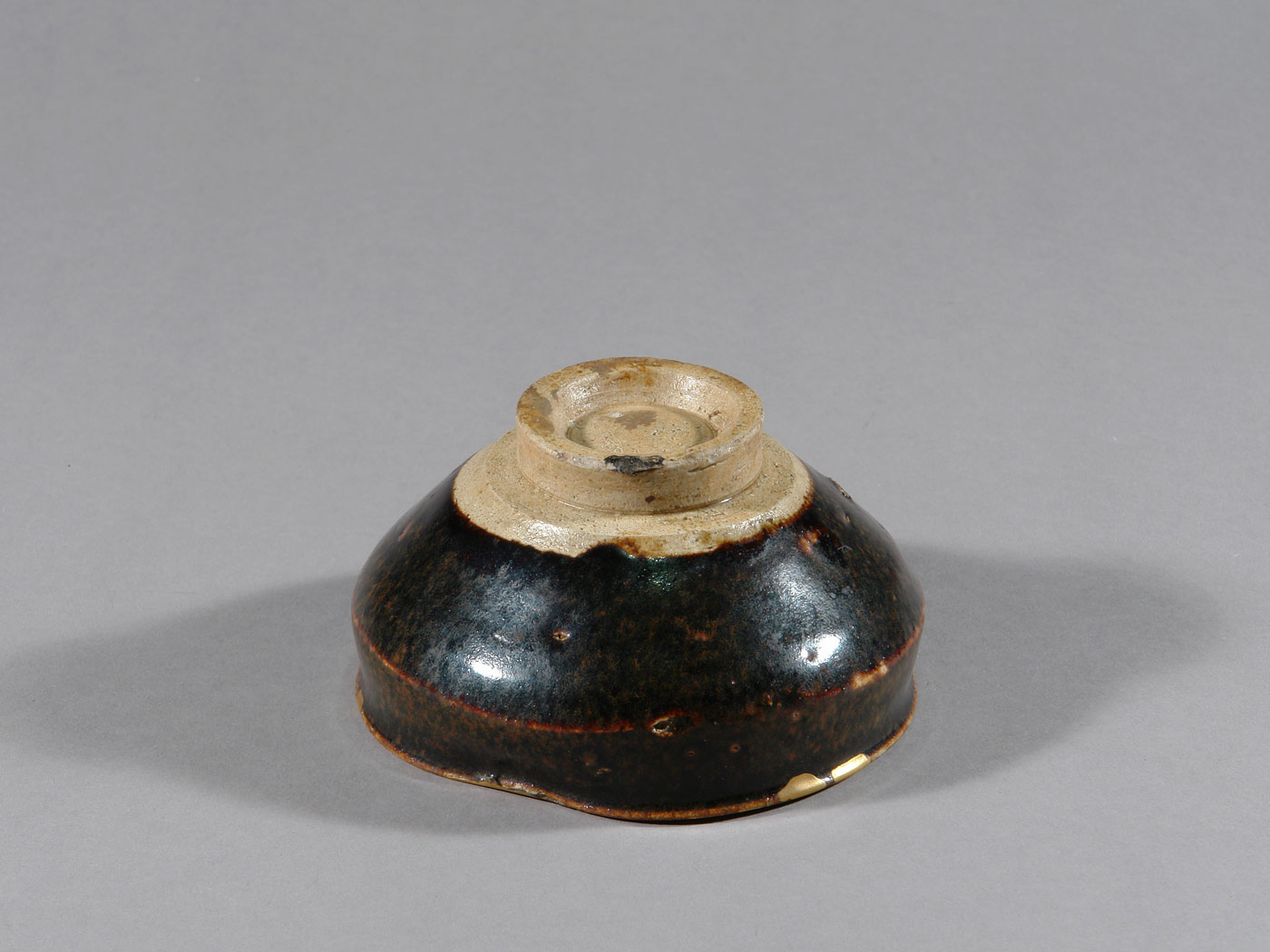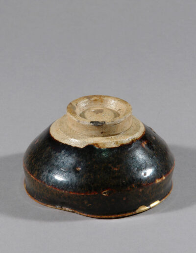 Die Kombination aus hellem, sandigem Scherben, ungleichmäßig verlaufender dunkel-eisenreicher Glasur und breit ausgeschnittenem Standring verweist auf eine Herstellung im Mino-Bereich (Gifu-Region). Dort entwickelte sich zwischen etwa 1580 und 1650 eine eigenständige Auseinandersetzung mit Tenmoku-Formen, die sich durch helle Tonerde und weniger homogen kontrolliertes Glasurverhalten von gleichzeitig produzierten Seto-Stücken unterscheidet. Auf dieser Grundlage lässt sich die Schale einer frühen Mino-Produktion des späten 16. bis frühen 17. Jahrhunderts zuweisen.