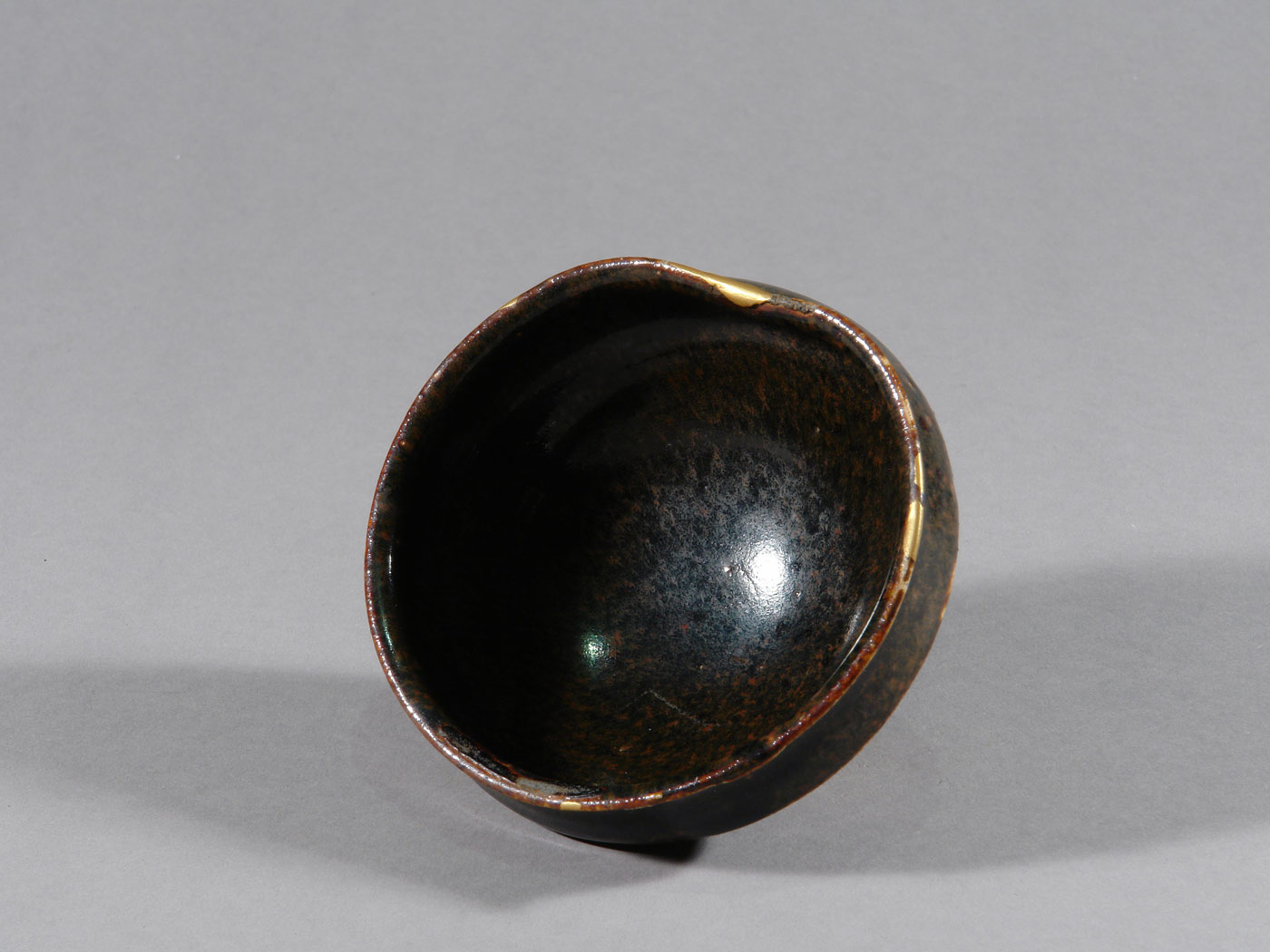 Mehrere kleine Randbeschädigungen wurden später sorgfältig in Kintsugi-Technik repariert. Diese Ergänzungen belegen einen längeren Gebrauch im Chanoyu (Teeweg) und unterstreichen den Stellenwert des Gefäßes innerhalb seines funktionalen Kontexts.