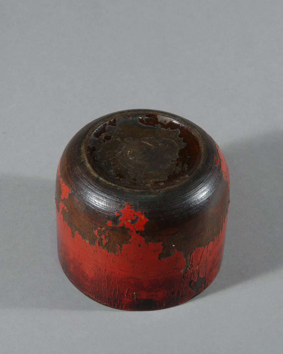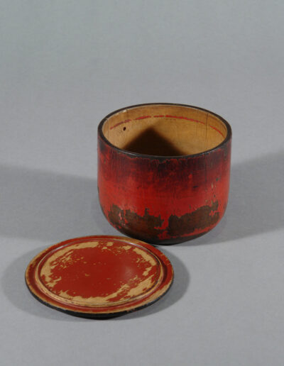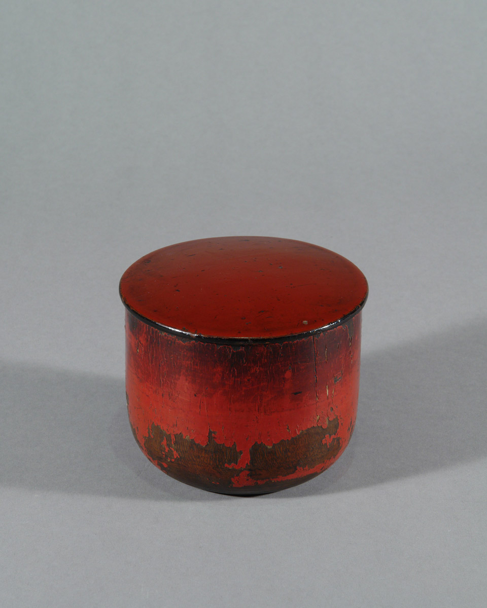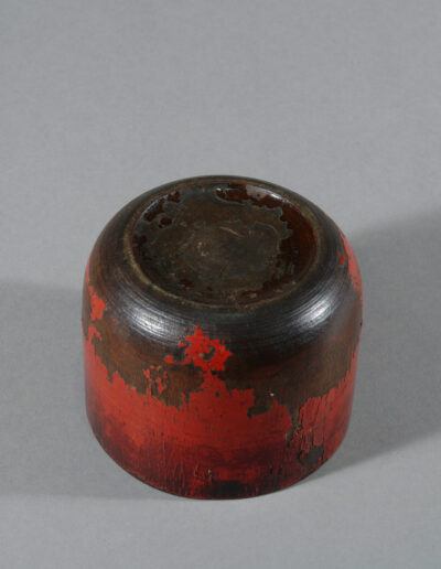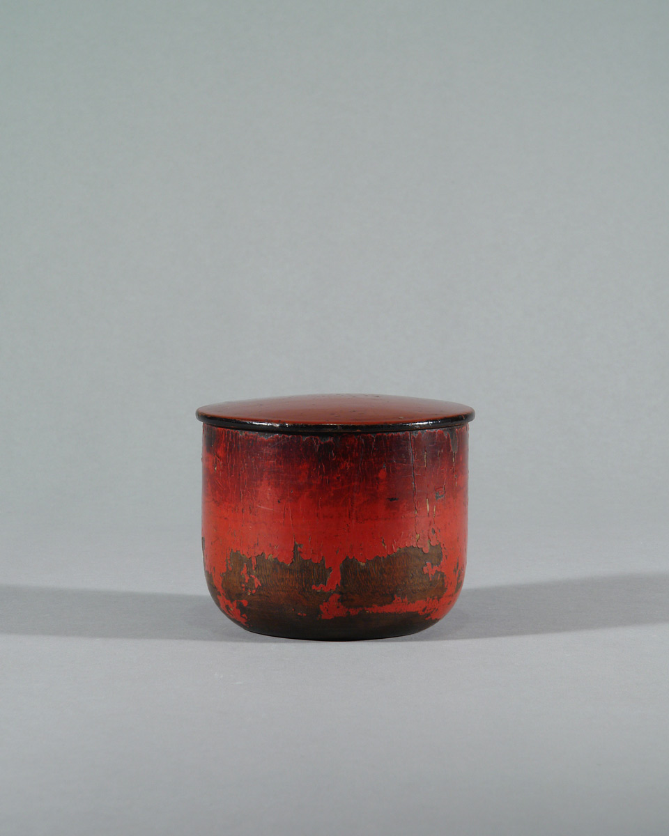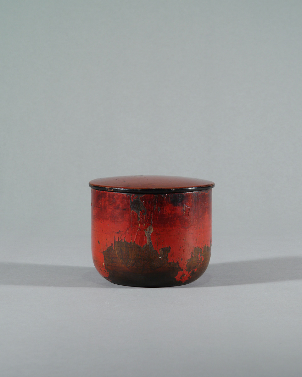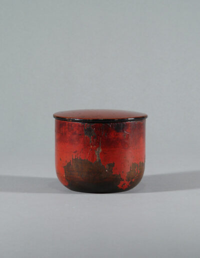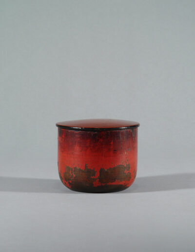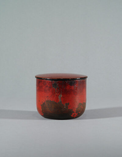 Diese seltene Deckeldose zeigt jene stille Schönheit, die alten Negoro-Arbeiten aus einer langen Geschichte des Gebrauchs erwächst. Die Oberfläche ist von feinen Veränderungen, Verdichtungen und Öffnungen geprägt, durch die sich die rote Lackhaut und der dunklere Grund zu einem lebendigen Ganzen verbinden.