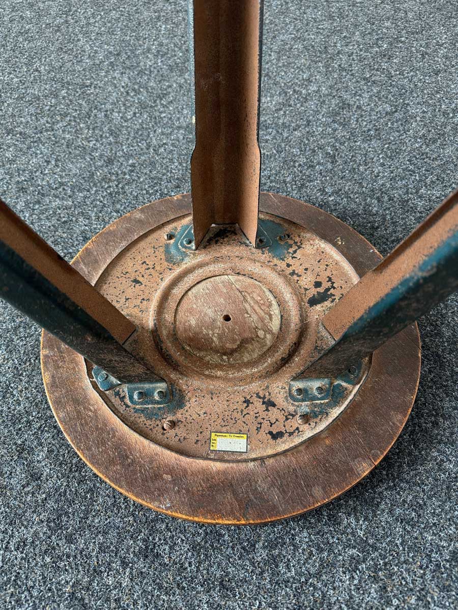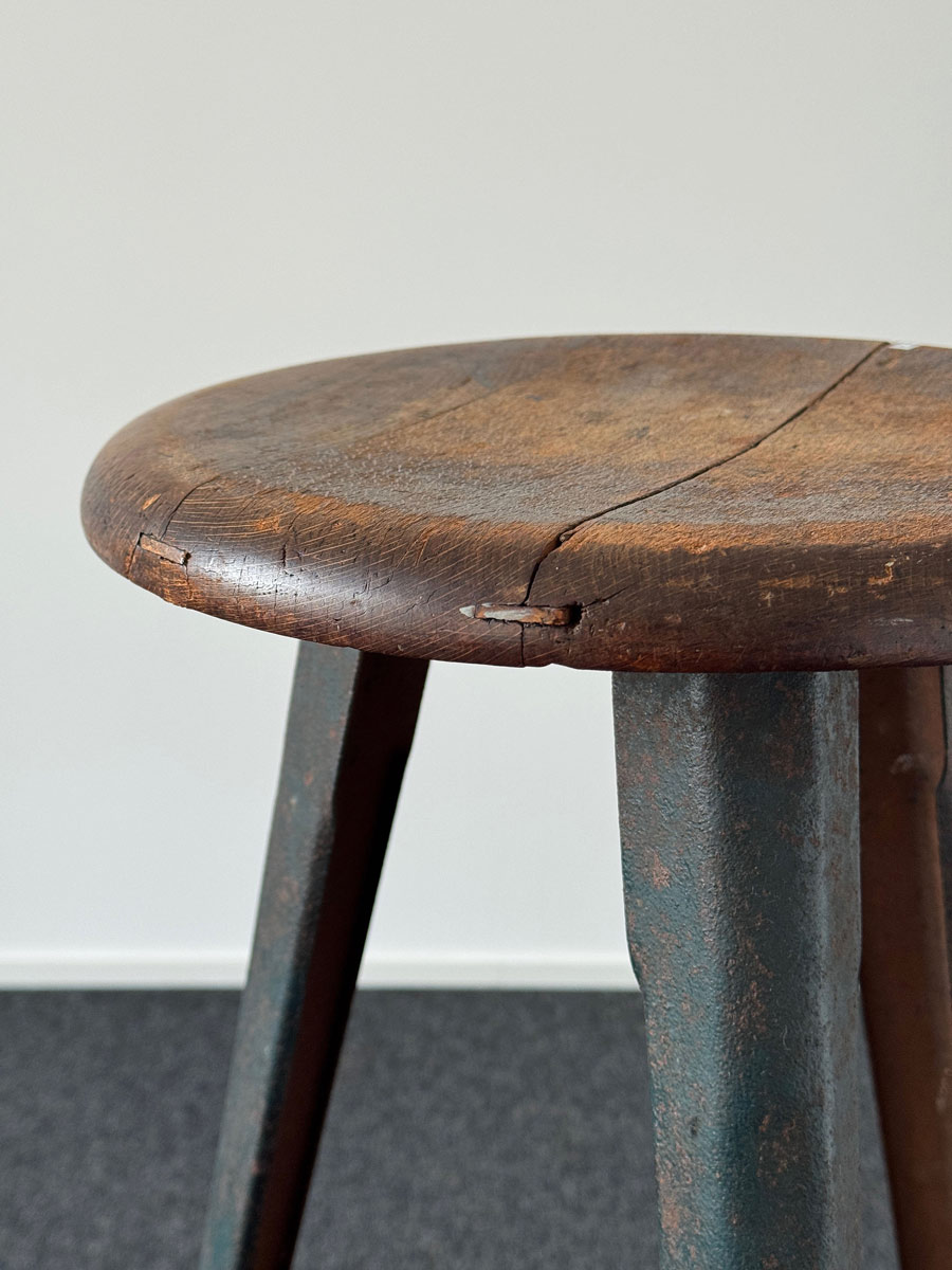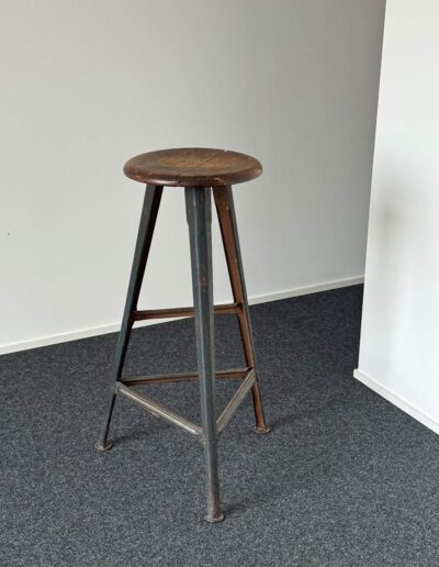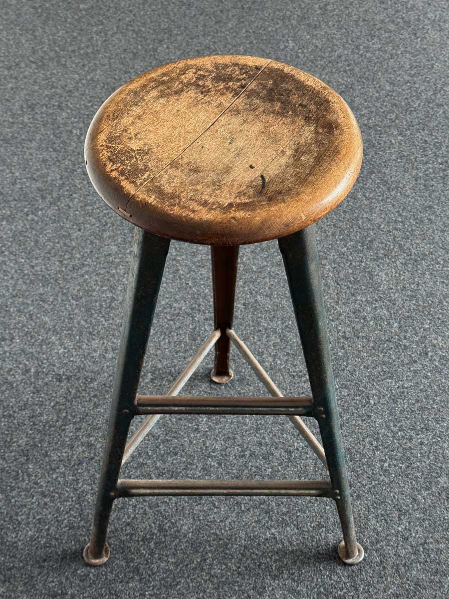 In seiner ungewöhnlichen Höhe, der unberührten Originalität und der dokumentierten Herkunft ist dieser Schemel auch ein Objekt von kulturgeschichtlicher Bedeutung – ein authentisches Zeugnis industrieller Funktionalität, das heute zugleich als ikonisches Designobjekt erscheint.