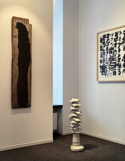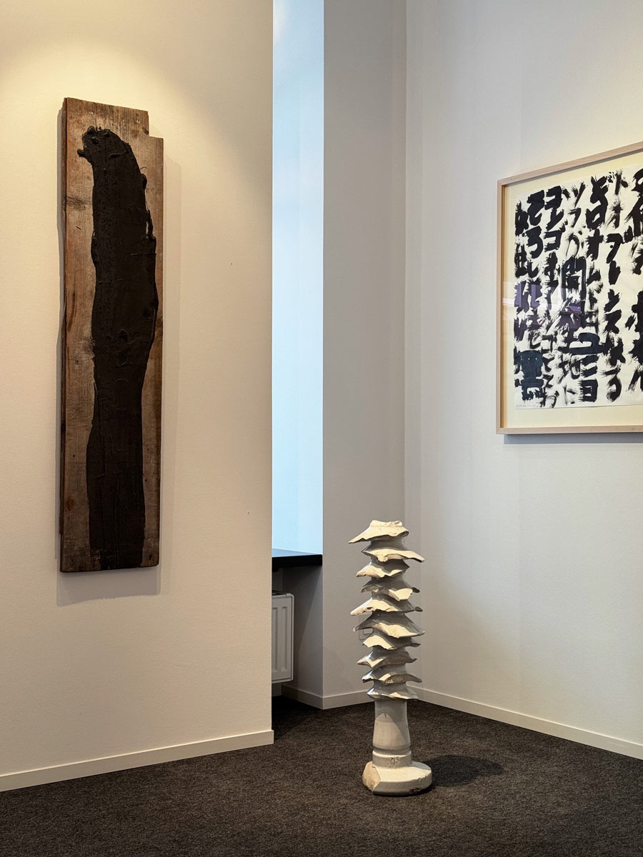 So erscheint die Stockschrift als reduzierte, zugleich tief aufgeladene Form – eine Spur des Handelns, die den Übergang von Zeichen und Bild, von Material und Meditation sichtbar macht.